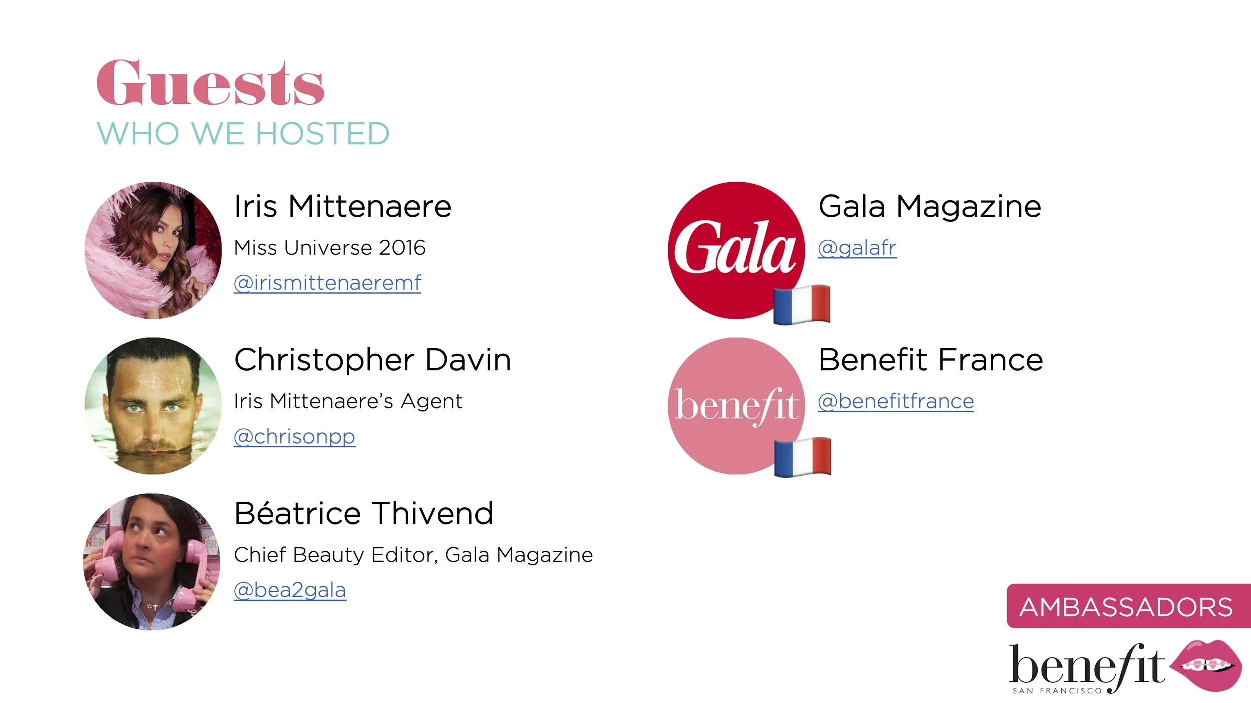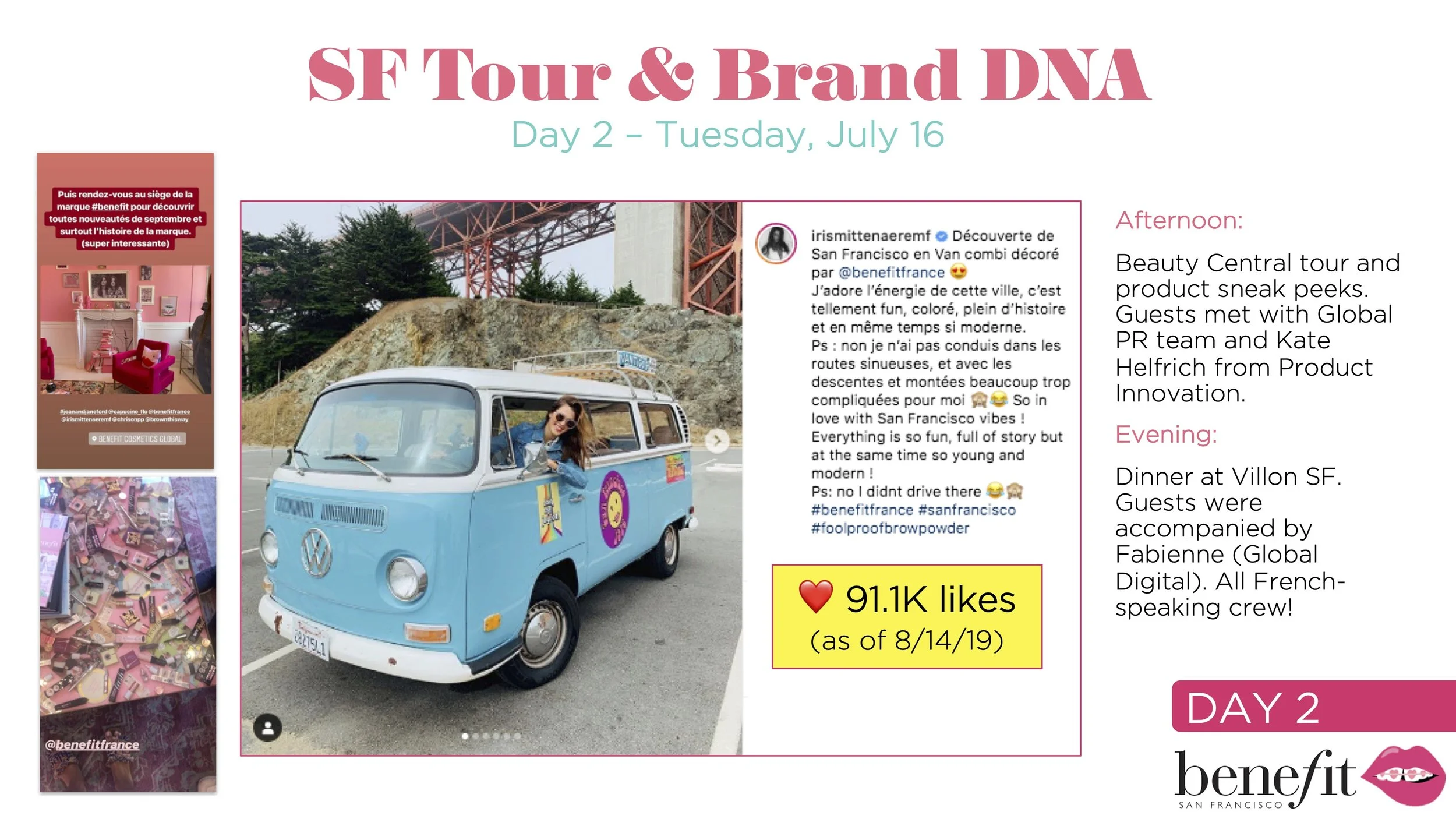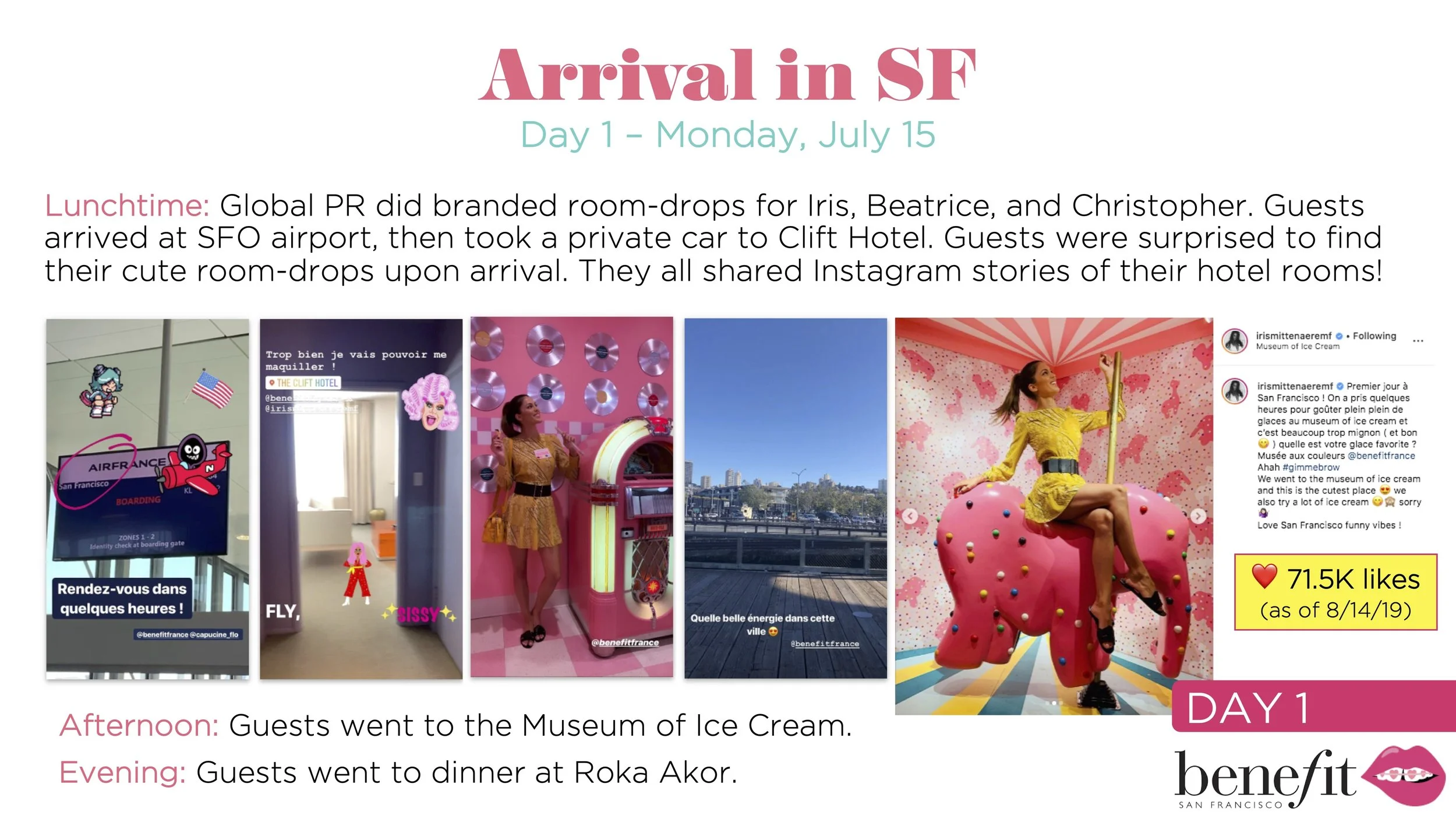 Overview: Organized and executed a high-impact, custom brand experience for Miss Universe 2016, Iris Mittenaere, and key French media, driving global brand awareness and reinforcing Benefit Cosmetics’ authority in the brow category through a tailored San Francisco immersion.